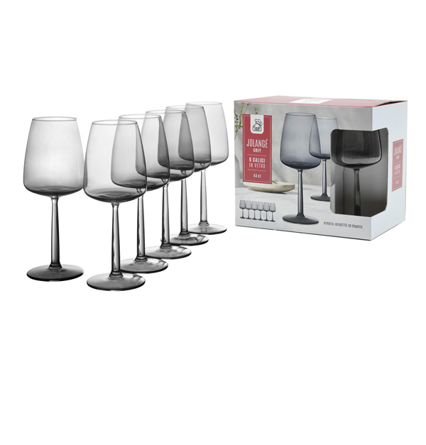 Σετ 6 ποτήρια κρασιού 430cc γυάλινα, γκρι