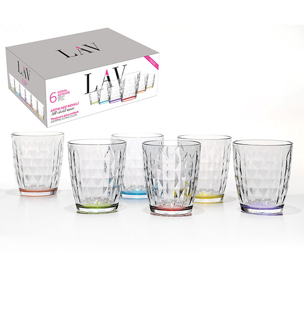 Σετ 6 γυάλινα ποτήρια με χρωματιστό πάτο 340ml