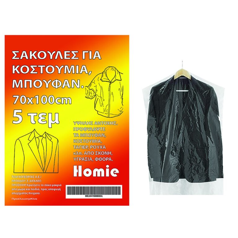 Σακούλες Πλαστικές Κουστουμιών σετ=5τεμ 100x70cm Homie 101490