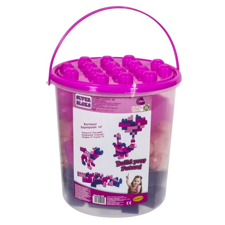 Κουβάς με 48 Μεγάλα Τουβλάκια για Κορίτσια 12+ Μηνών ø25x26cm Lazaridis 0032K