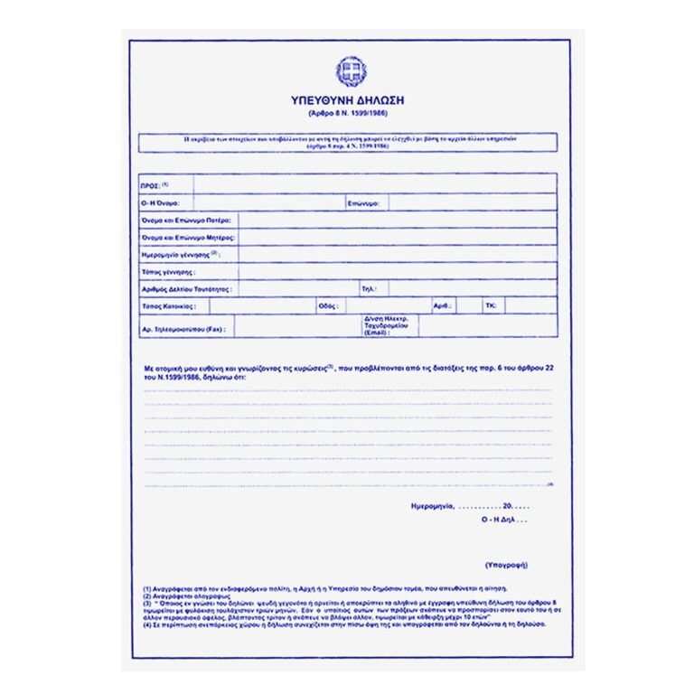 Μπλοκ Υπεύθυνες Δηλώσεις Ν1599 πακ=50φ JustNote 38540