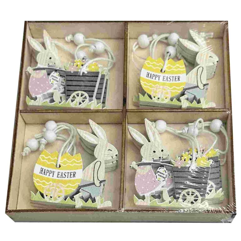 Νάνοι Ξύλινοι Κρεμαστοί με Αυγό & Χειράμαξα σετ=12τεμ Ξύλινο κουτί=13x13cm Bunny’s 932104