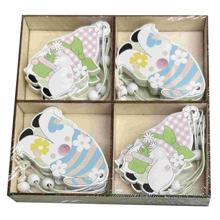 Νάνοι Ξωτικά Ξύλινοι Κρεμαστοί με Λουλούδια σετ=12τεμ Ξύλινο κουτί=13x13cm Bunny’s 932207