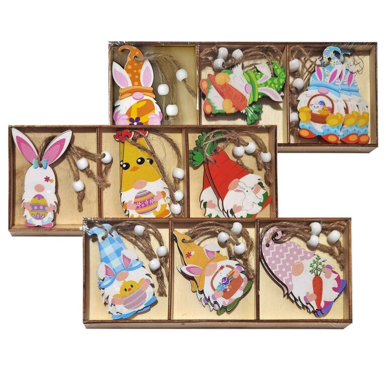 Στολίδια Ξύλινα Φιγούρες με Αυτάκια Σετ=9 τεμ 8cm Bunny’s 932262