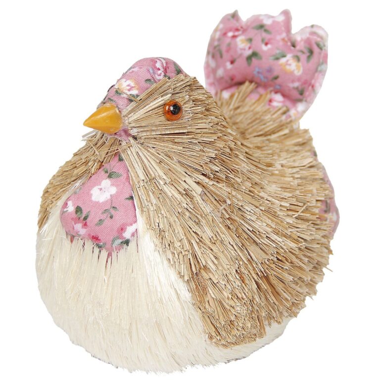 Κότα Καθιστή Ψάθινη με ροζ 13x10x12cm Bunny’s 932191