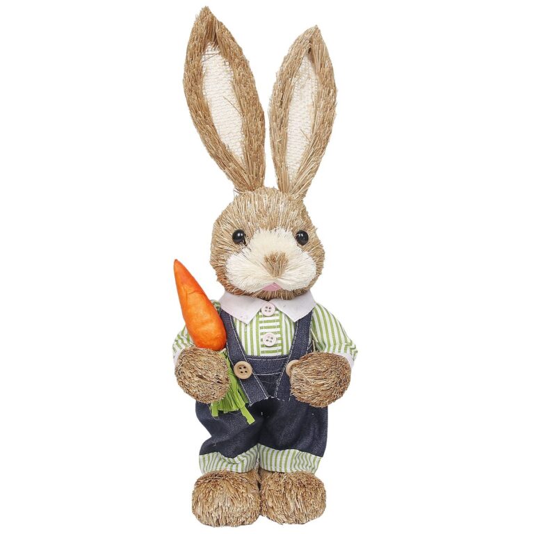 Λαγός με Μπλουζάκι Πράσινο Ψάθινος με Καρότο 33x13x10cm Bunny’s 932092