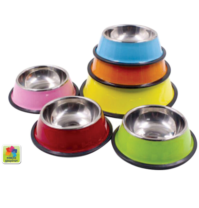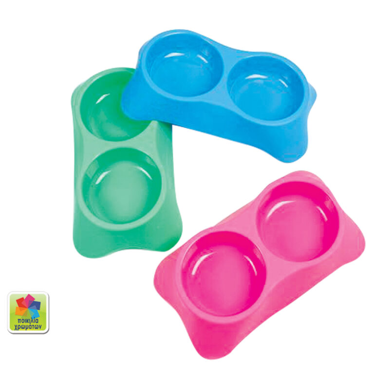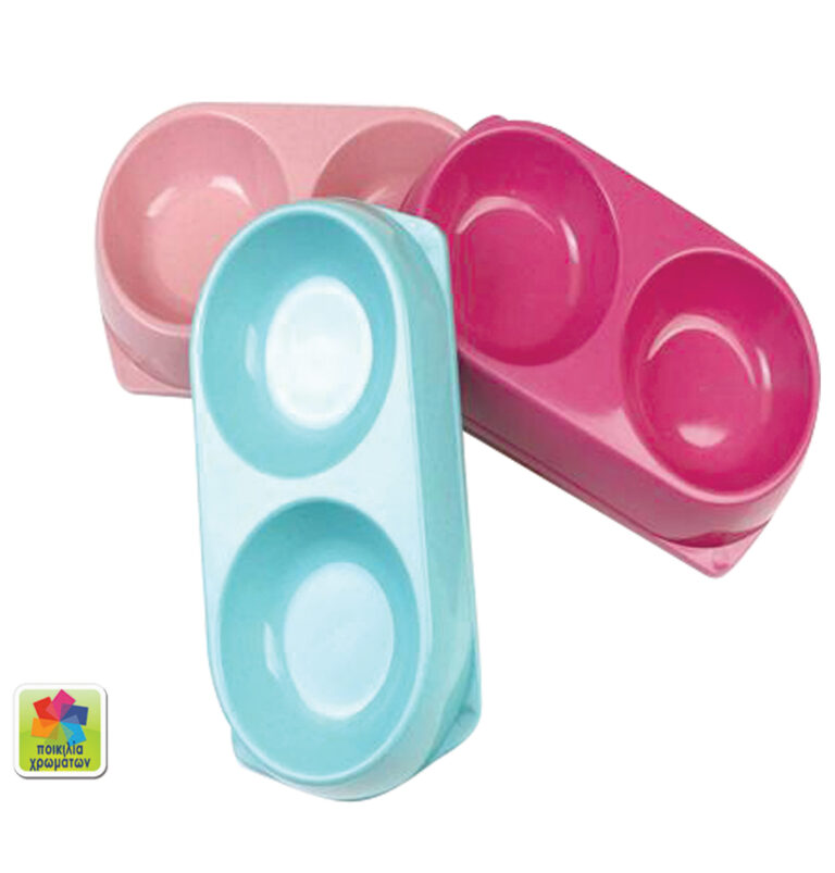 Διπλό μπόλ φαγητού σκύλου σε διάφορα χρώματα
