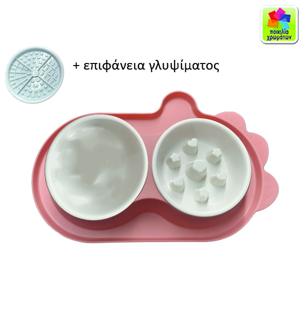 Διπλό μπόλ φαγητού σκύλου πλαστικό αργής κατανάλωσης τροφής