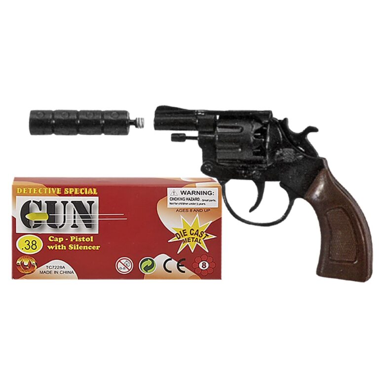 Όπλο Μεταλλικό 8σφαιρο με Σιγαστήρα 14x7cm (+σιγαστήρας 6cm) Carnavalista 23234
