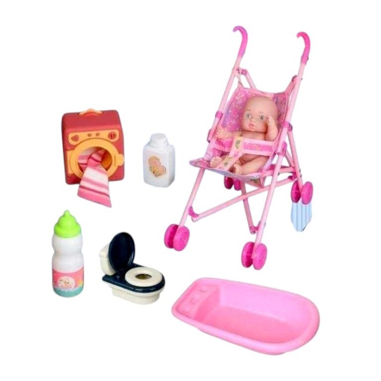 Κούκλα μωρό με σετ μπάνιου και καροτσάκι – 669-609B – 215565