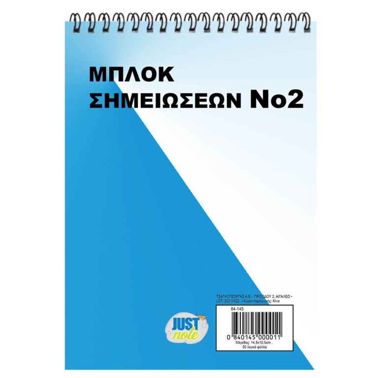 Μπλοκ Σπιράλ Νο:2 Λευκό 50φυλ. 14,5×10,5cm JustNote 104165