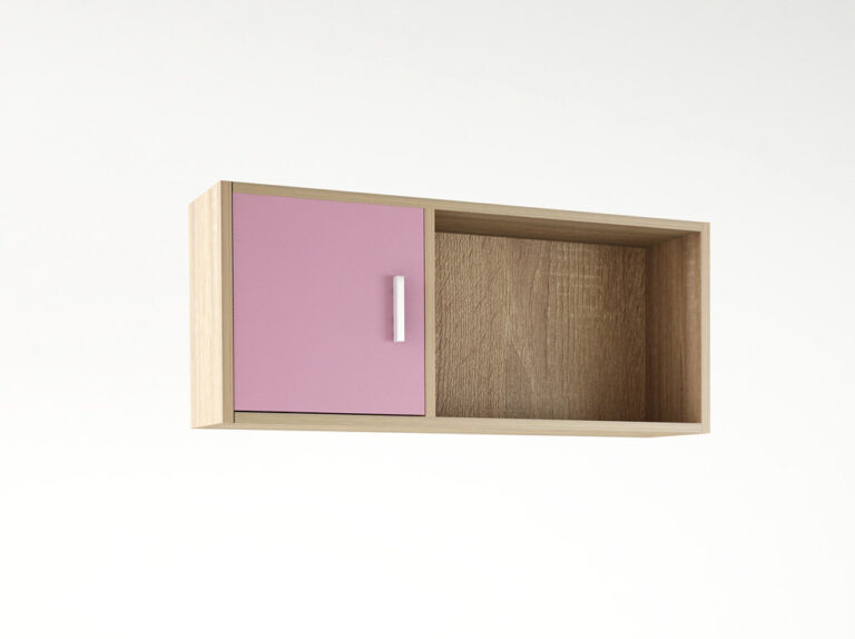 Βιβλιοθήκη τοίχου κρεμαστή σε χρώμα δρυς-ροζ 100x30x43