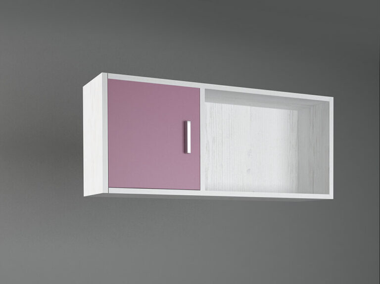 Βιβλιοθήκη τοίχου κρεμαστή σε χρώμα λευκό ρουστίκ-ροζ 100x30x43