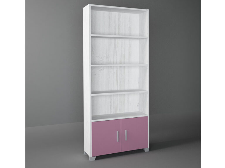 Βιβλιοθήκη παιδική σε χρώμα λευκό ρουστίκ-ροζ 40x30x180