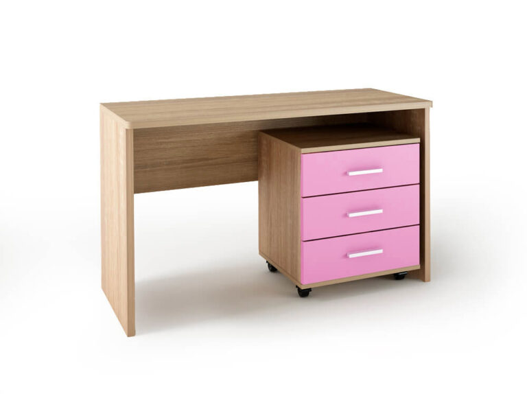 Γραφείο με τροχήλατη συρταριέρα σε δρυς-ροζ χρώμα 120x60x78