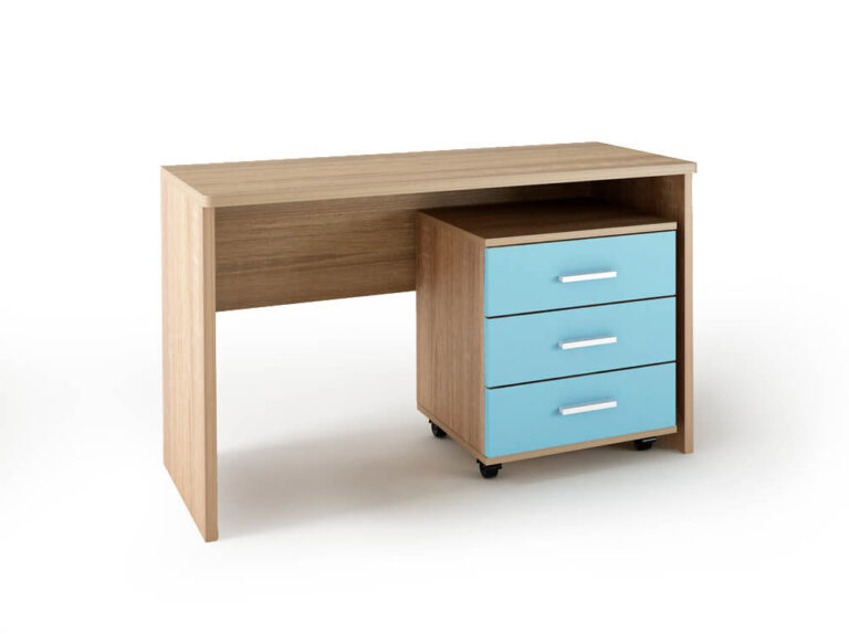 Γραφείο με τροχήλατη συρταριέρα σε δρυς-μπλε χρώμα 120x60x78