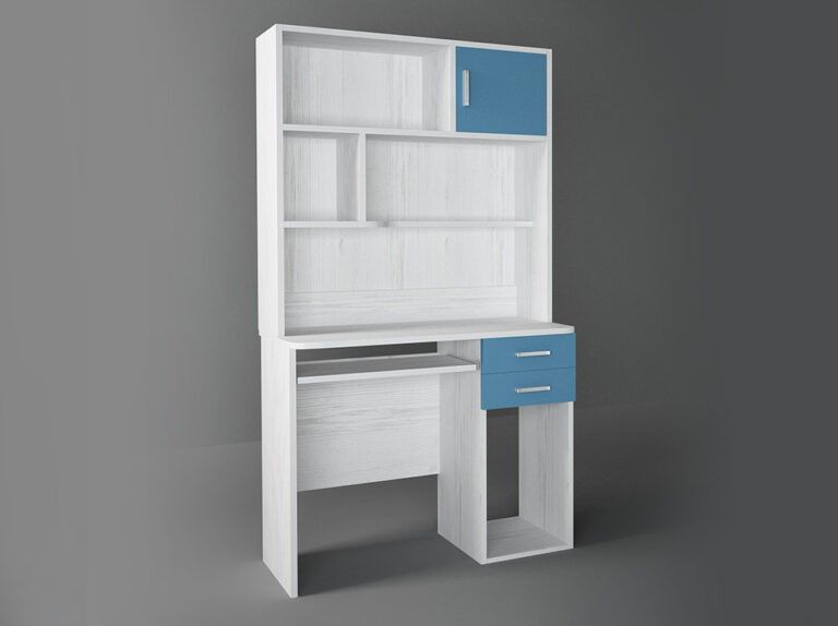 Γραφείο με εταζέρα σε χρώμα λευκό ρουστίκ-σιέλ 100x55x180