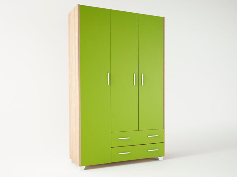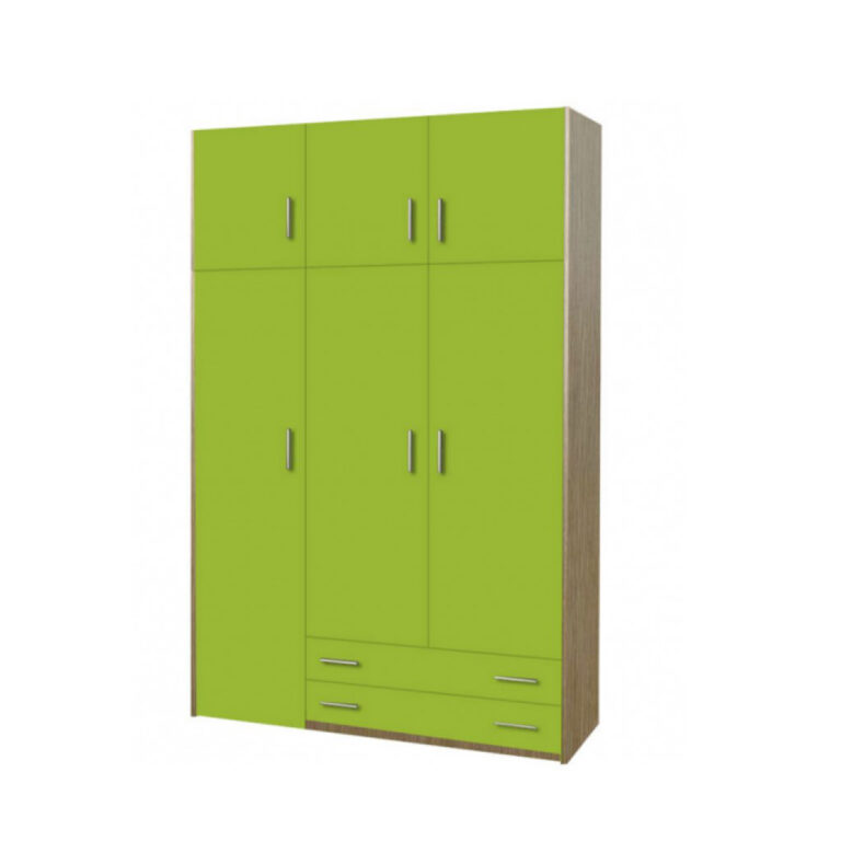 Ντουλάπα παιδική τρίφυλλη με πατάρι σε χρώμα δρυς-λαχανί 110x50x240