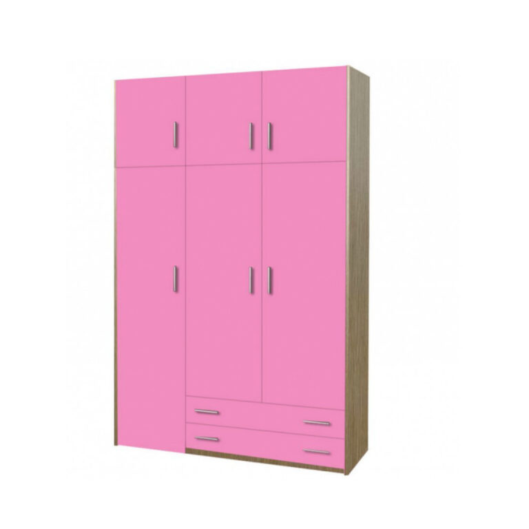 Ντουλάπα παιδική τρίφυλλη με πατάρι σε χρώμα δρυς-ροζ 110x50x240