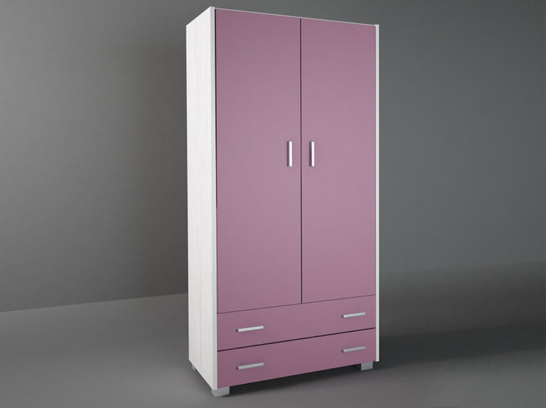 Ντουλάπα δίφυλλη σε χρώμα λευκό ρουστίκ-ροζ 85x50x180