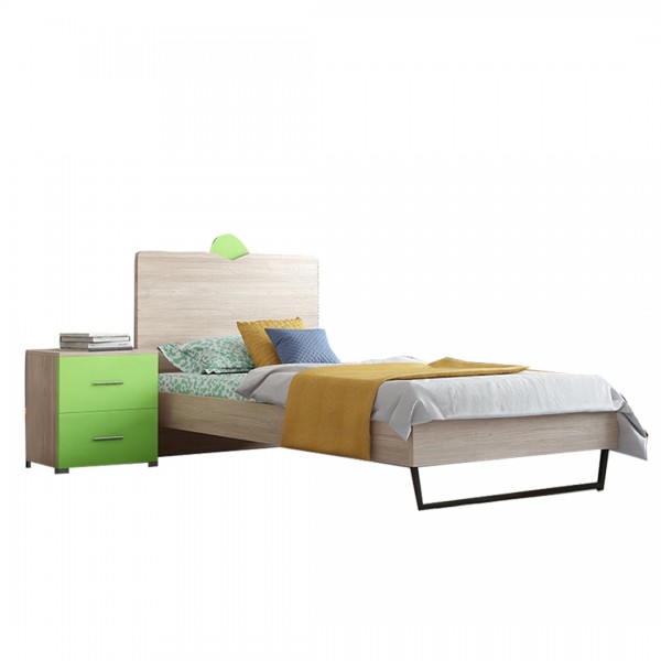 Παιδικό κρεβάτι “ΚΥΜΑ” μονό σε χρώμα δρυς-λαχανί 90×190