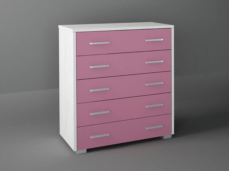 Συρταριέρα με 5 συρτάρια σε χρώμα λευκό ρουστίκ-ροζ 80x45x90