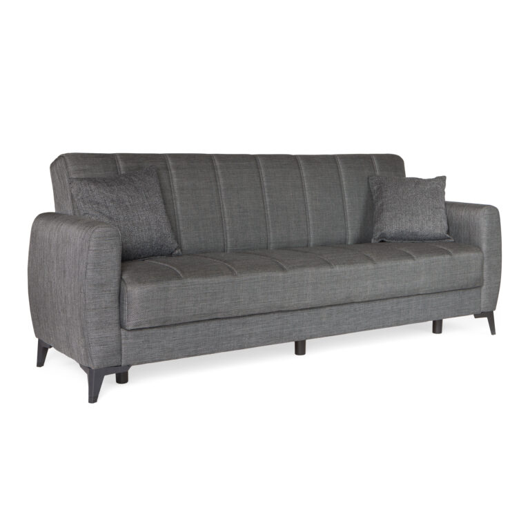 Καναπές-κρεβάτι με αποθηκευτικό χώρο τριθέσιος Milos γκρι ύφασμα 210x78x85