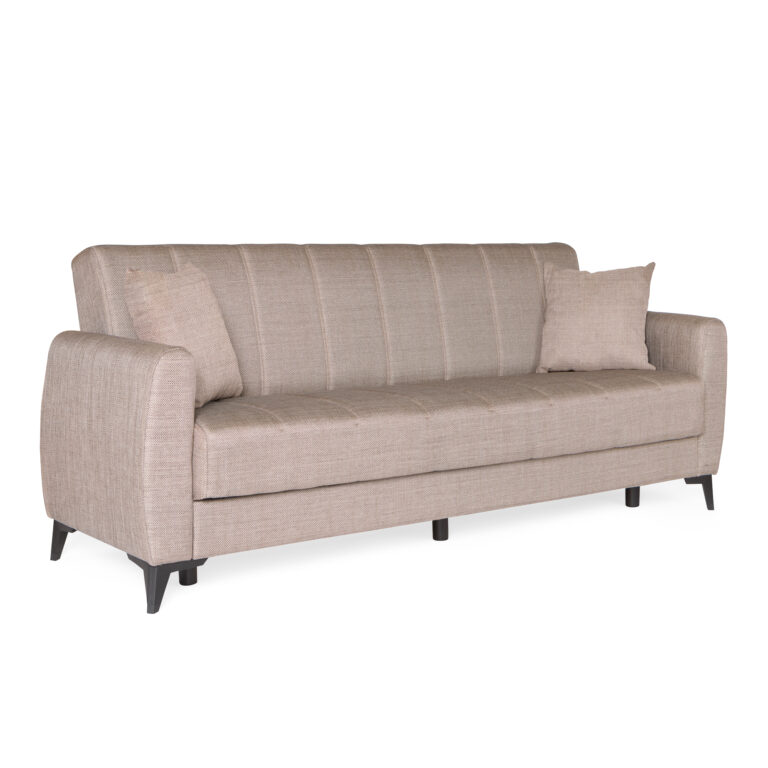 Καναπές-κρεβάτι με αποθηκευτικό χώρο τριθέσιος Anna μπεζ ύφασμα 227x85x97