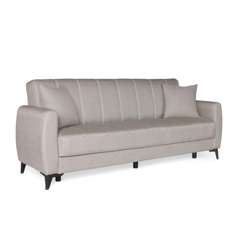 Καναπές-κρεβάτι με αποθηκευτικό χώρο τριθέσιος Milos μπεζ-γκρι ύφασμα 210x78x85