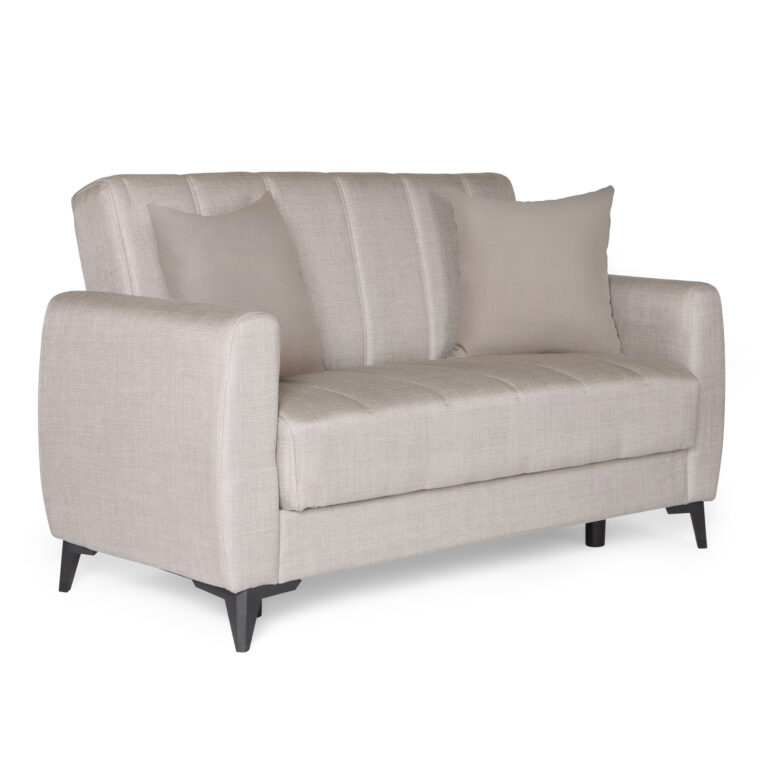 Καναπές-κρεβάτι με αποθηκευτικό χώρο διθέσιος Milos μπεζ-γκρι ύφασμα 148x78x85