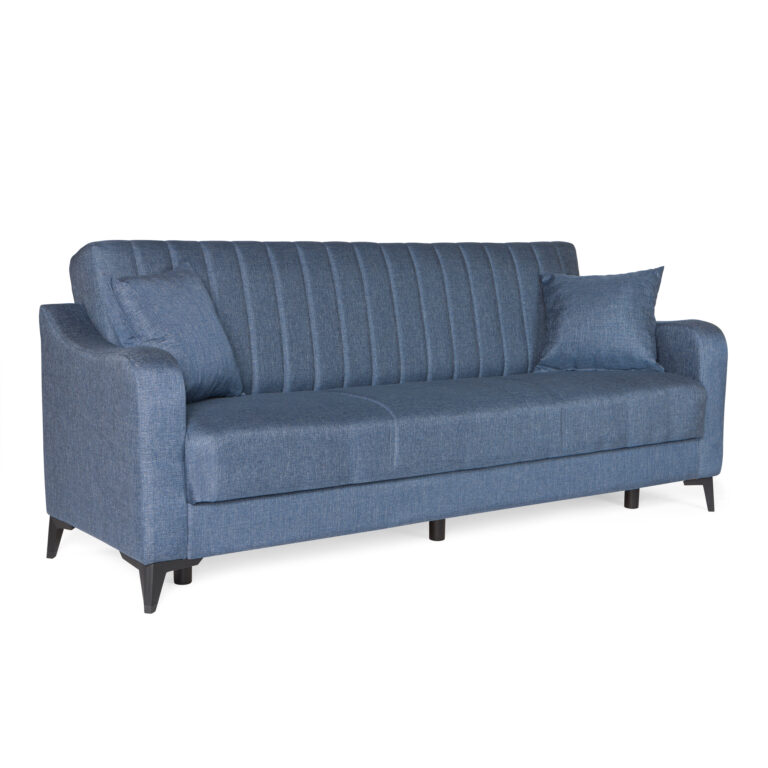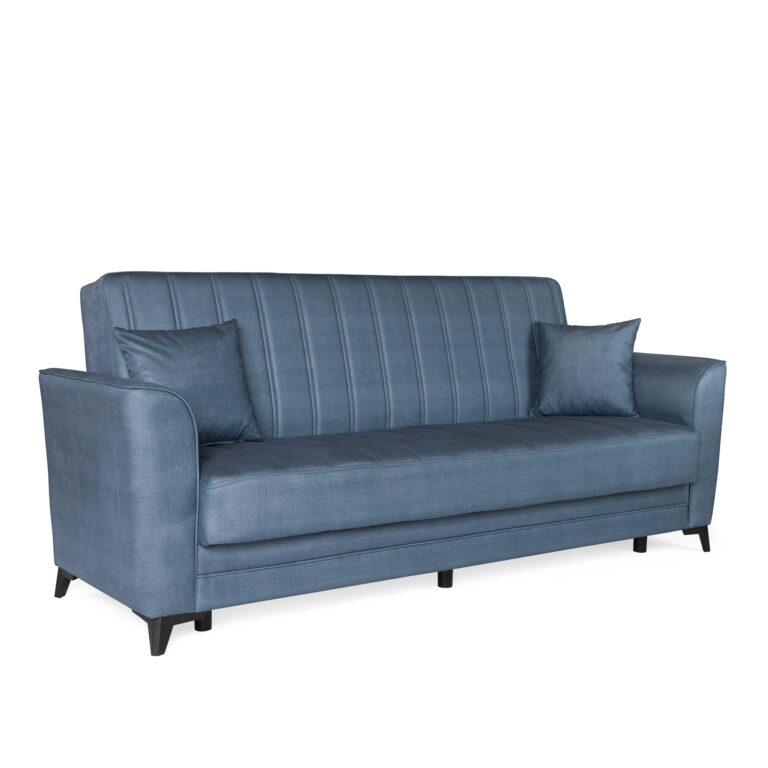 Καναπές-κρεβάτι με αποθηκευτικό χώρο τριθέσιος Rudy γκρι-μπλε ύφασμα 204x78x85