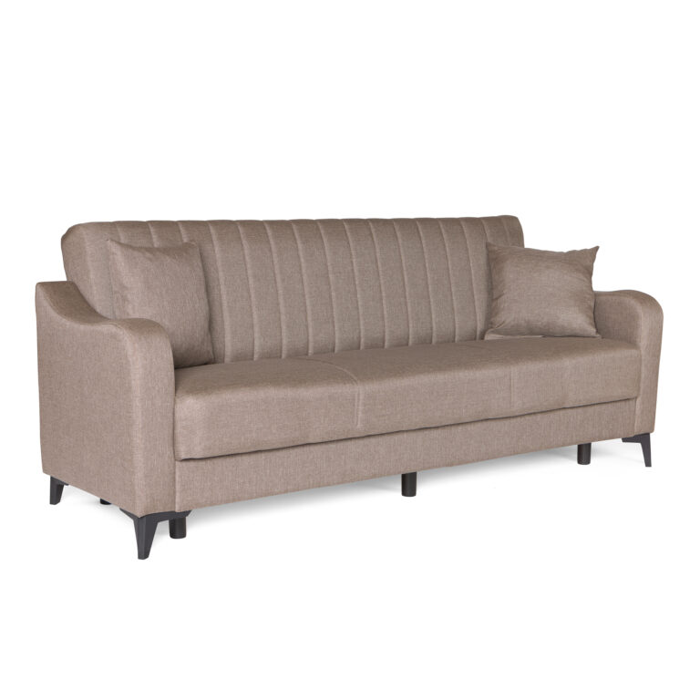 Καναπές-κρεβάτι με αποθηκευτικό χώρο τριθέσιος Rudy καφέ-μπεζ ύφασμα 204x78x85