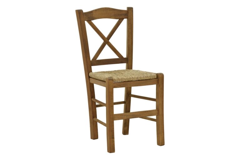 Καρέκλα καφενείου με ψάθα Santorini χιαστή άβαφο ξύλο 42x40x89εκ