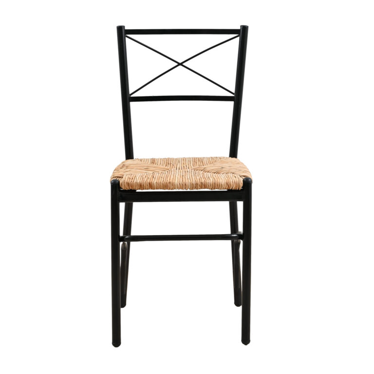 Καρέκλα μεταλλική με φυσική ψάθα σε μαύρο χρώμα 40x36x86