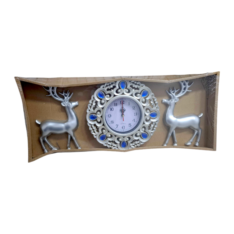 Ρολόι τοίχου με διακοσμητικά ελάφια – 3pcs – 911-5 – 391155 – Silver