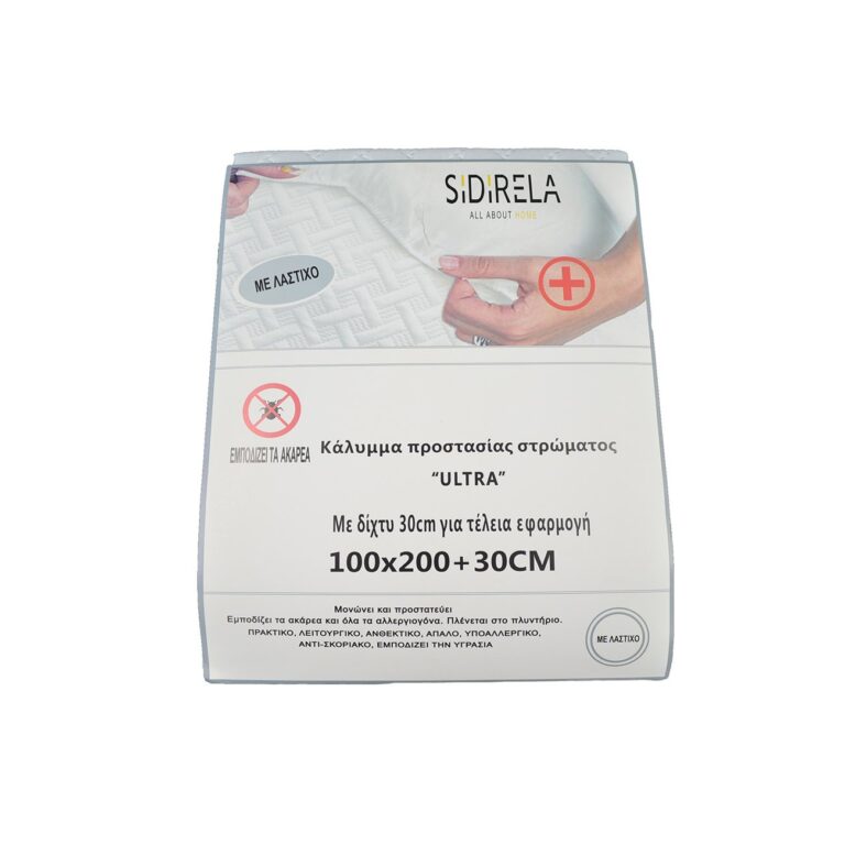 Κάλυμμα προστασίας στρώματος “ULTRA” από καπιτονέ ύφασμα σε λευκό χρώμα 100×200+30