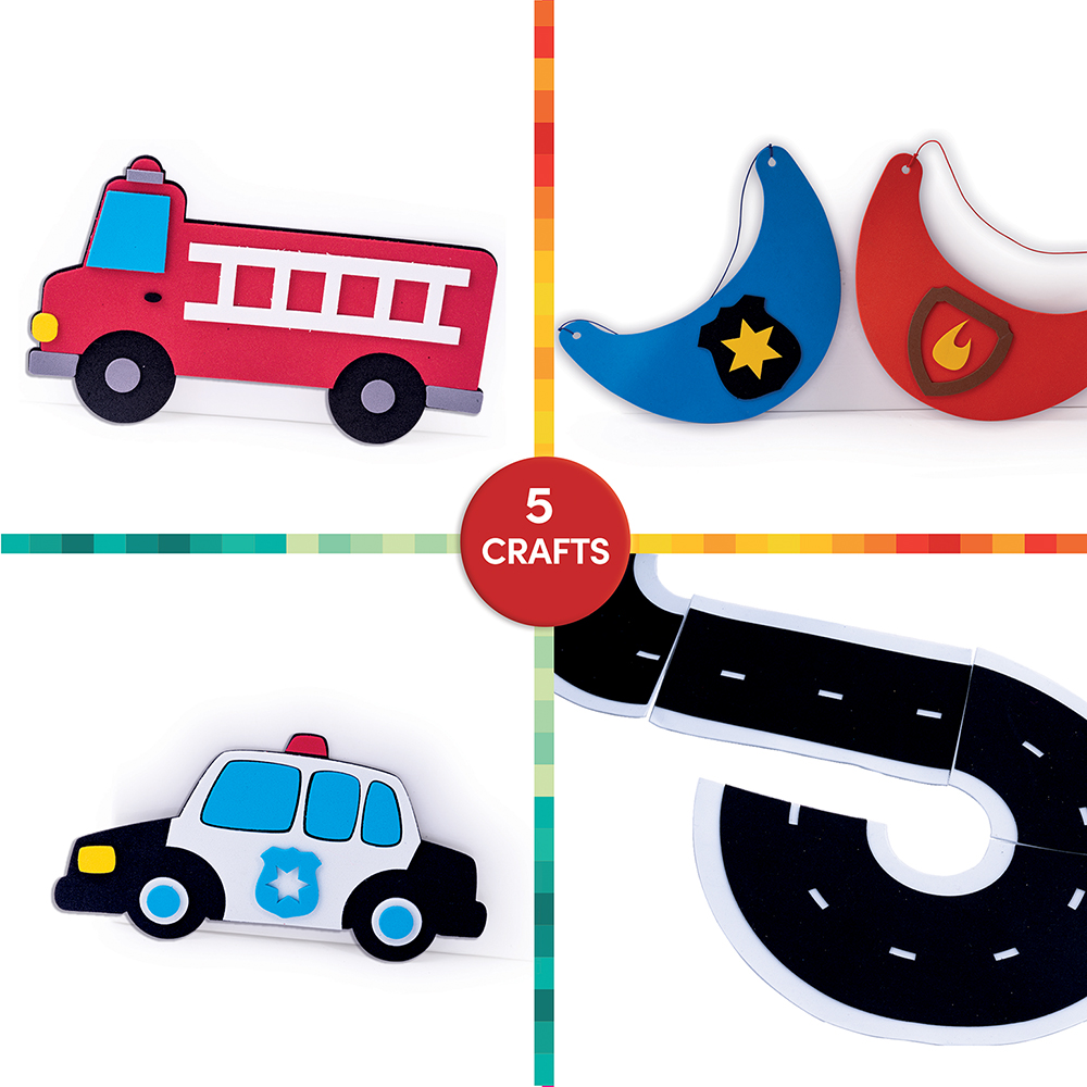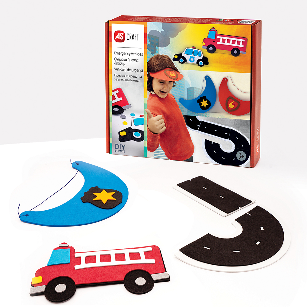 Φτιάξτε τις δικές σας κατασκευές και μπείτε στον κόσμο της δράσης. Επιδαπέδιος δρόμος, οχήματα αστυνομίας και πυροσβεστικής, καπέλα αστυνομικού και πυροσβέστη, ειδικά σχεδιασμένα από μαλακά και ασφαλή υλικά για δημιουργική κατασκευή από παιδιά. Χειροτεχνίες DIY: – 1 επιδαπέδιος δρόμος – 1 όχημα αστυνομίας – 1 όχημα πυροσβεστικής – 1 καπέλο αστυνομικού – 1 καπέλο πυροσβέστη *Όλα τα AS Craft έχουν έντονο το στοιχείο του role play καθώς όλα περιλαμβάνουν κατασκευές που μόλις το παιδί τις ολοκληρώσει, μπορεί να τις φορέσει.