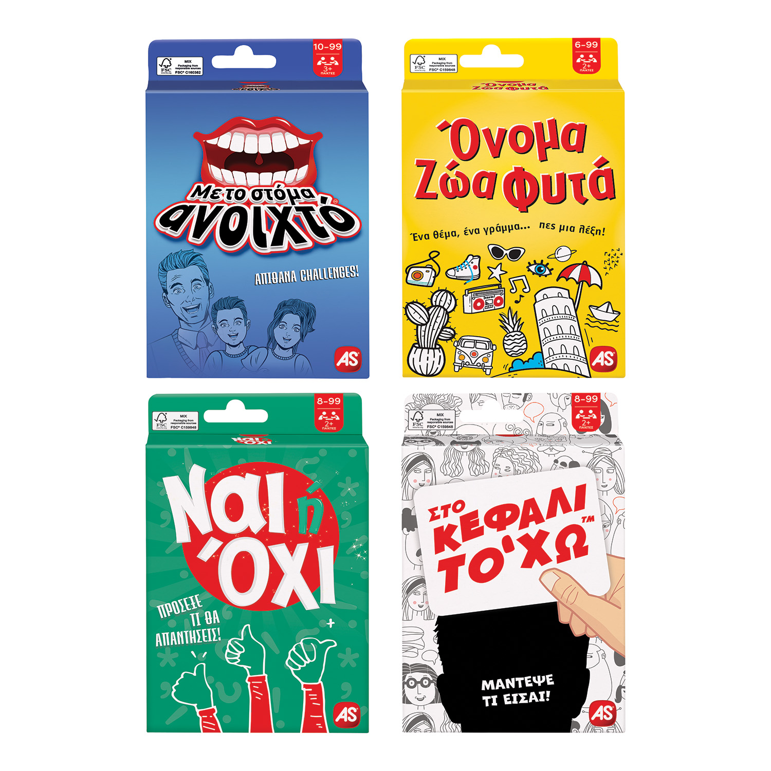 AS Games Παιχνίδια Με Κάρτες Στο Κεφάλι Το ‘Χω – Με Το Στόμα Ανοιχτό – Όνομα Ζώα Φυτά – Ναι Ή Όχι