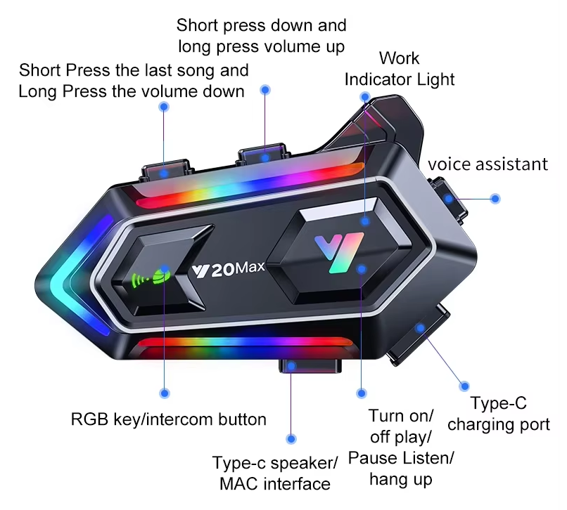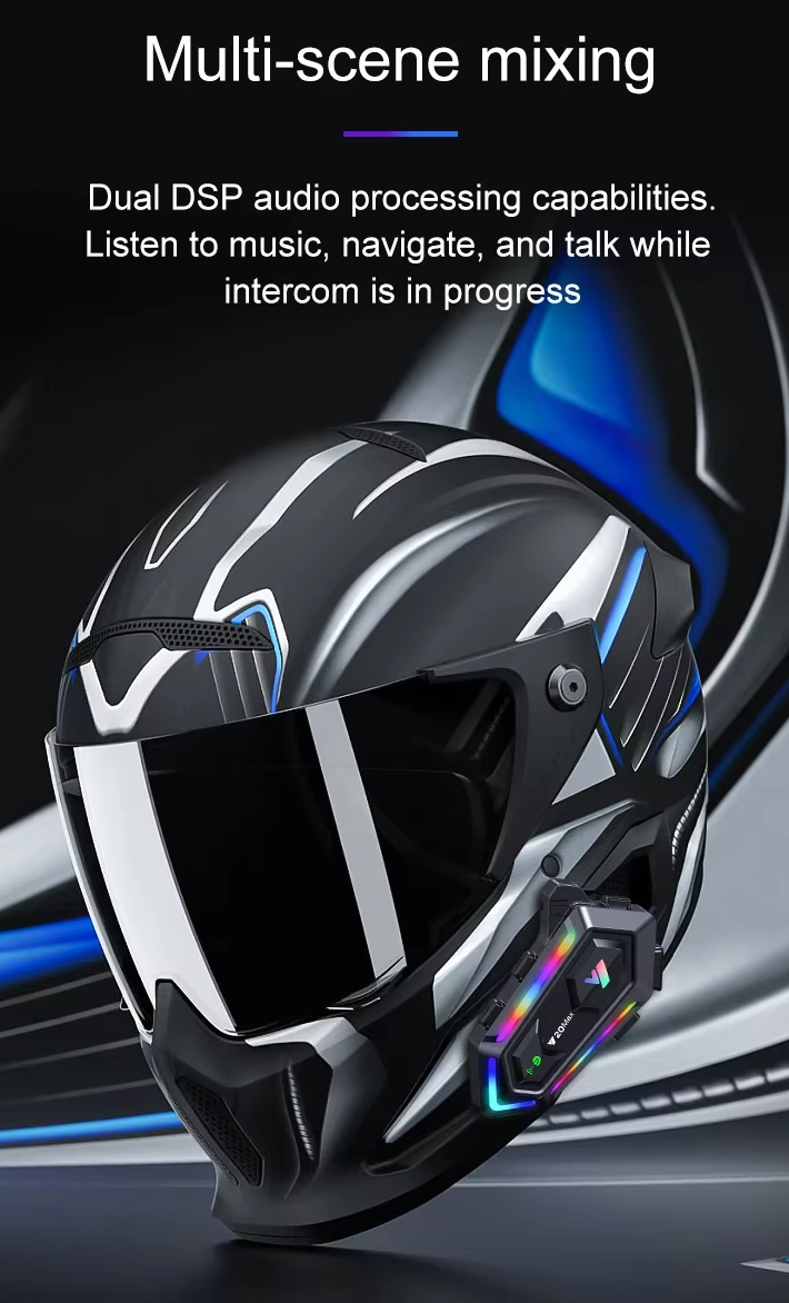 Ασύρματη ενδοεπικοινωνία κράνους μοτοσυκλέτας, μονή, με Bluetooth και πρακτικό σχεδιασμό που σας βοηθά να οδηγείτε με ασφάλεια ενώ παραλλήλα μπορείτε να απαντάτε στις κλήσεις σας και να ακούτε την αγαπημένη σας μουσική.Χαρακτηριστικά: Έκδοση Bluetooth: V5.3,Voice assistant,Φωτισμός LED RGB,Εξαιρετικά χαμηλή κατανάλωση ενέργειας, Συμβατό με όλες τις συσκευές που διαθέτουν Bluetooth, Υποστήριξη λειτουργίας αυτόματης απάντησης σε κλήση, Ενσωματωμένο μικρόφωνο με τεχνολογία εξάλειψης παρεμβολών, Hχείο με υψηλής ποιότητας ήχο και τεχνολογία μείωσης θορύβου,Eύχρηστα κουμπιά ελέγχου λειτουργιών,Συχνότητα: 100Hz ~ 18KHzΤάση φόρτισης: 5V-1A (ΟΧΙ από ταχυφορτιστή μεγαλύτερης ισχύος),Αδιάβροχο IP65,Χωρητικότητα μπαταρίας: 3,7V 1000mAh,Χρόνος φόρτισης: 2,5 ώρες, Χρόνος αναμονής: έως 300 ώρες, Αυτονομία χρήσης: έως 15 ώρες.Διαστάσεις: 8.5 x 4.5 x 3 cmΕπιτρέπει τη σύνδεση 2 συσκευών μεταξύ τους για ενδοεπικοινωνία με συνεπιβάτη ή άλλο οδηγό, σε απόσταση έως και 300m. *Περιλαμβάνεται 1 συσκευή ενδοεπικοινωνίας, μικρόφωνο, βάσεις τοποθέτησης και καλώδιο φόρτισης.