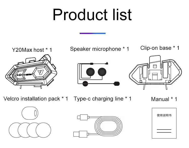 Ασύρματη ενδοεπικοινωνία κράνους μοτοσυκλέτας – Bluetooth – Y20-MAX – 811689