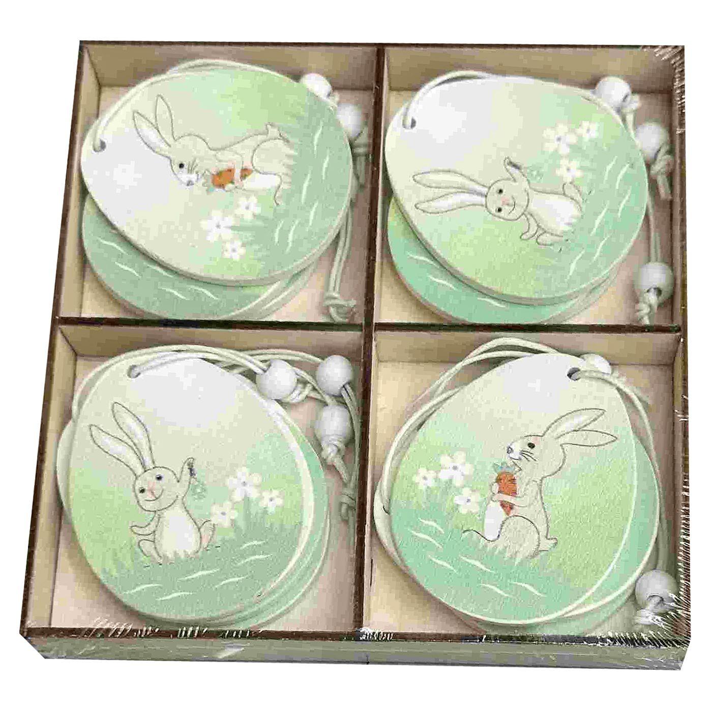 Αυγα Ξύλινα Κρεμαστά Πράσινα με Λαγό σετ=12τεμ Ξύλινο κουτί=13x13cm Bunny’s 932205