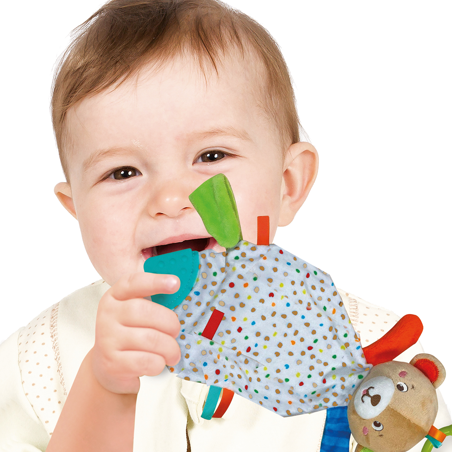 Ένα απαλό αρκουδάκι για να το έχει το παιδί πάντα μαζί του. Στη μία γωνία του καλύμματος υπάρχει μια πρακτική θήκη πιπίλας. Η μητέρα θα μπορεί να «αφήσει» τη δική της μυρωδιά στο απαλό παιχνίδι, που θα συντροφεύει το παιδί όλη την ημέρα, δημιουργώντας την τέλεια κατάσταση για ύπνο. Η επιλογή των υφασμάτων είναι αποτέλεσμα προσεκτικής έρευνας, για να εξασφαλιστεί η μέγιστη ποιότητα και ασφάλεια κατά τη διάρκεια του παιχνιδιού. Tα προϊόντα της σειράς Baby Clementoni For You, είναι ειδικά σχεδιασμένα για να συμβάλλουν στη σωστή ανάπτυξη του μωρού σας από τους πρώτους μήνες της ζωής του. Τα χρώματα, οι διαφορετικοί ήχοι, η υφή και η μουσική των παιχνιδιών προκαλούν έντονα το ενδιαφέρον του μωρού. Κεντρίζουν το ενδιαφέρον του και το βοηθούν να ανακαλύπτει τον κόσμο, να νιώθει ασφάλεια και οικειότητα στον χώρο του, αλλά και να ηρεμεί. Τα παιχνίδια της σειράς Baby Clementoni For You, αποτελούν εργαλεία που ενθαρρύνουν την αλληλεπίδραση μεταξύ των γονιών και του παιδιού, και παρέχουν τη γνωστική και συναισθηματική ανάπτυξη του μωρού στη χρήση διαφορετικών υλικών και λειτουργιών. Τα παιχνίδια της σειράς Baby Clementoni βοηθούν τους γονείς να επικοινωνούν και να αλληλεπιδρούν με το μωρό από τις πρώτες ημέρες της ζωής του. Με καινοτόμο σχεδιασμό και χρώματα, μη τοξικά και ανθεκτικά υλικά, καθώς και με ανάγλυφες επιφάνειες και πολλές δραστηριότητες ευνοούν την ανάπτυξη των οπτικών, απτικών και ακουστικών ικανοτήτων, την κινητική δραστηριότητα και τους πρώτους λογικούς συσχετισμούς.