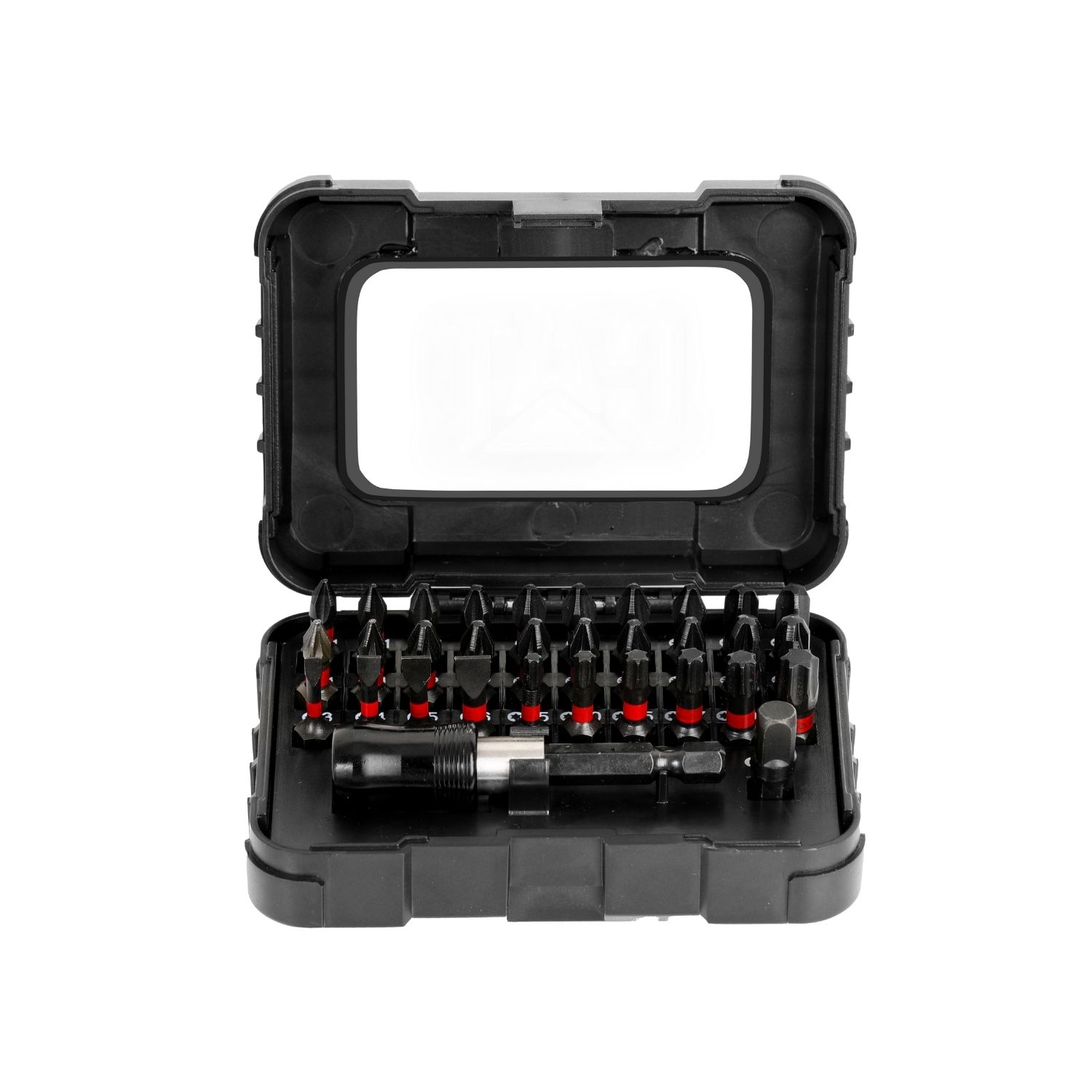 Το σετ μυτών κατσαβιδιού CAT DA01901 περιλαμβάνει 32 τεμάχια υψηλής ποιότητας για κάθε απαίτηση βιδώματος. Οι μύτες είναι κατασκευασμένες από τροποποιημένο ατσάλι S2 και έχουν υποστεί θερμική επεξεργασία για αυξημένη σκληρότητα και αντοχή, εξασφαλίζοντας μεγάλη διάρκεια ζωής και αξιοπιστία. Περιλαμβάνει όλα τα βασικά μεγέθη PZ, PH, SL και Torx, μαζί με έναν μαγνητικό αντάπτορα και μία μύτη HEX για απόλυτη συμβατότητα με κατσαβίδια χειρός και ηλεκτρικά εργαλεία.