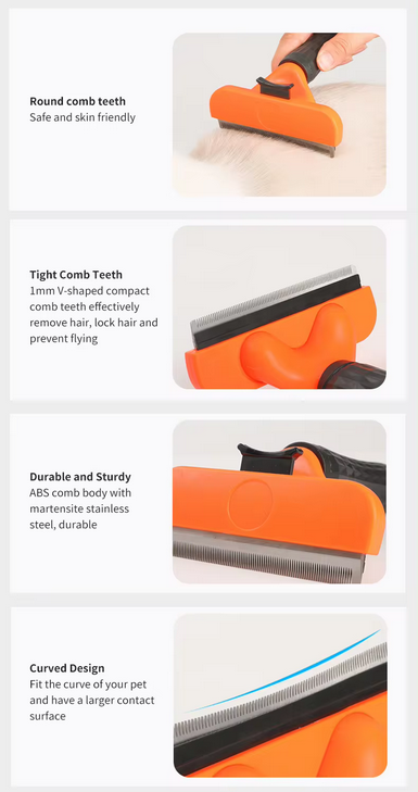 Χτένα βουρτσίσματος κατοικιδίου, σχεδιασμένη με ειδικά δοντάκια από ανοξείδωτο ατσάλι υψηλής ποιότητας, που απομακρύνουν το νεκρό τρίχωμα, απολεπίζουν απαλά και προσφέρουν παράλληλα μια ευχάριστη αίσθηση μασάζ στο κατοικίδιό σας. Με εξαιρετικό σχεδιασμό που δεν γρατζουνάει το δέρμα του κατοικιδίου σας.Διαθέτει κουμπί άμεσου καθαρισμού της χτένας από τις τρίχες με ένα πάτημα. Κατάλληλο για κατοικίδια με ευαίσθητο δέρμα.Διαστάσεις: 16 x 7.8 x 6.5cm.*Αποστολή χρώματος κατόπιν διαθεσιμότητας.