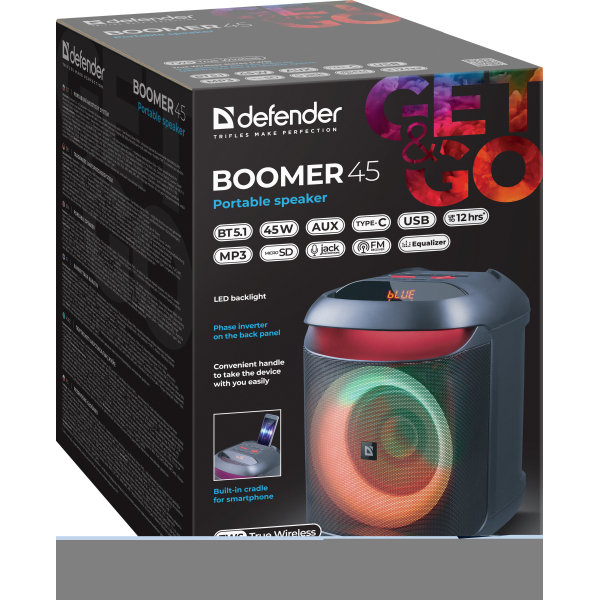 DEFENDER PORTABLE BLUETOOTH SPEAKER BOOMER 45 black