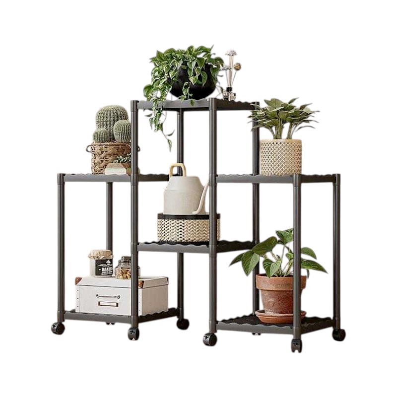 Διακοσμητική ραφιέρα δαπέδου με 6 τετράγωνα ράφια, συναρμολογούμενη, με μεταλλικό σκελετό και πλαστικά ανθεκτικά ράφια, ιδανική για την οργάνωση φυτών και την διακόσμηση χώρου.Με ροδάκια για εύκολη μετακίνηση.