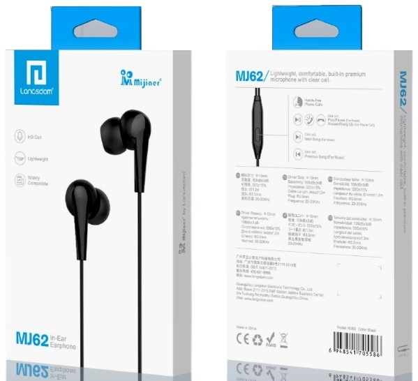 Ενσύρματα ακουστικά Langsdom με στερεοφωνικό ήχο υψηλής ποιότητας, τεχνολογία ελαχιστοποίησης εξωτερικών θορύβων και ελαφρύ εργονομικό σχεδιασμό για άνετη πολύωρη χρήση. Διαθέτουν πλήκτρο/ελεγκτή και ενσωματωμένο μικρόφωνο για την άμεση απάντηση στις κλήσεις σας χωρίς να χρειάζεται να απαντήσετε από το smartphone σας.Χαρακτηριστικά: Σύνδεση Jack 3.5mm – Συμβατά με όλα τα κινητά τηλέφωνα και άλλες ηλεκτρονικές συσκευές που διαθέτουν θύρα Jack.Τοποθέτηση In-ear με ωτοασπίδα σιλικόνης,Μέγεθος ηχείου ακουστικού: 10mm,Αντίσταση: 32Ω±15%Ευαισθησία: 108±3dB Max.Output Power: 6mW Εύρος συχνότητας: 100~10KHZ ΜικρόφωνοΜήκος καλωδίου: 1.2m.