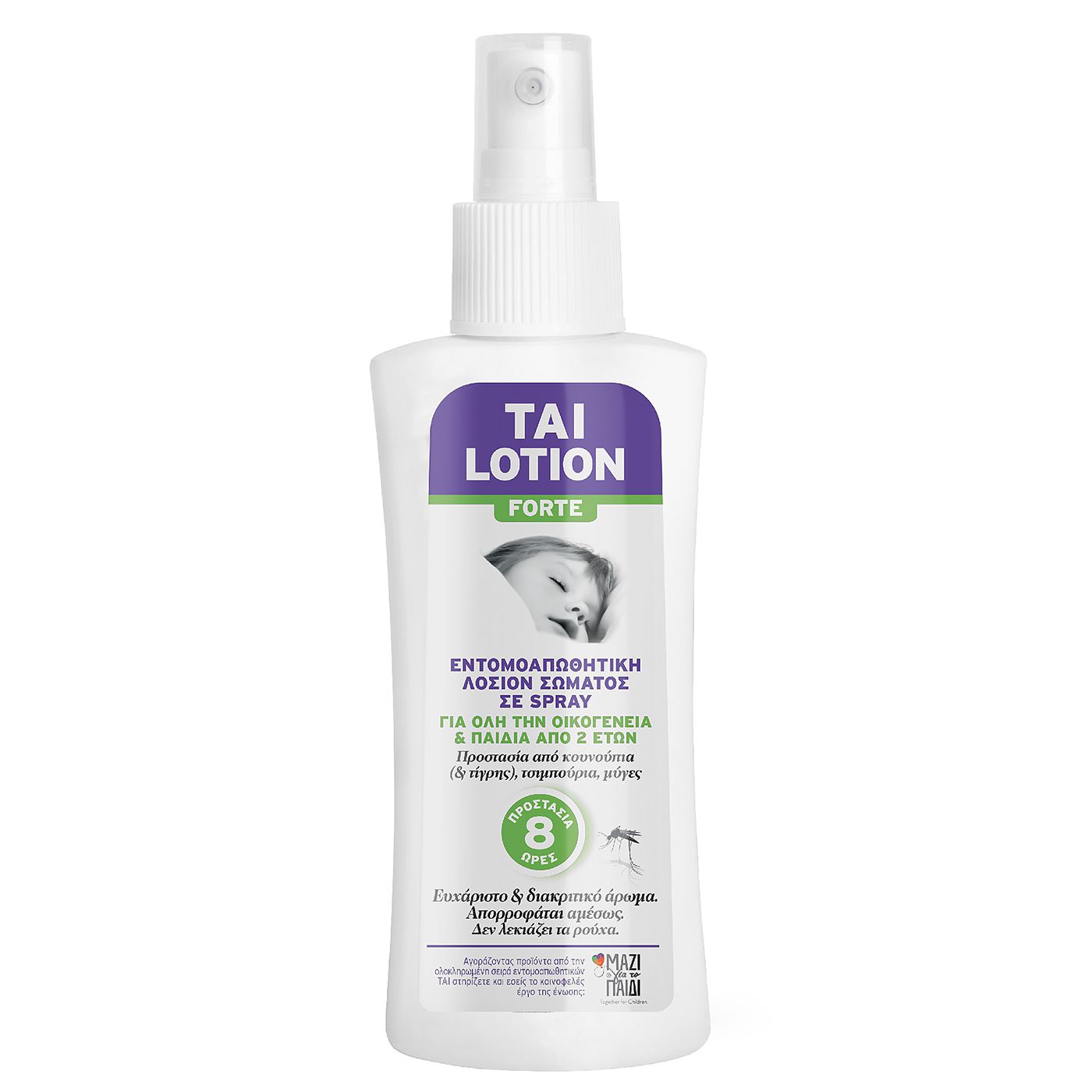 Εντομοαπωθητική λοσιόν spray. 8 ώρες προστασία για όλη την οικογένεια. 0% αλλεργιογόνο & δερματολογικά πιστοποιημένο από διεθνή οργανισμό. Πολύ διακριτικό και ευχάριστο άρωμα. Απορροφάται αμέσως & δεν λεκιάζει. Vegan χωρίς ζωικά λίπη. 100ml