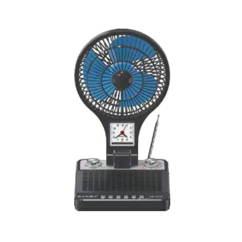 Επαναφορτιζόμενο ραδιόφωνο & ανεμιστήρας 2 σε 1, σε ιδιαίτερο Retro σχεδιασμό. Μπορεί να τοποθετηθεί επιτραπέζια σε κάθε χώρο και να λειτουργήσει παράλληλα ως συσκευή ραδιοφώνου και ανεμιστήρας, ενώ διαθέτει και ενσωματωμένο αναλογικό ρολόι. Χαρακτηριστικά: Ραδιόφωνο AM/FM/SW, Πτυσσόμενη κεραία,