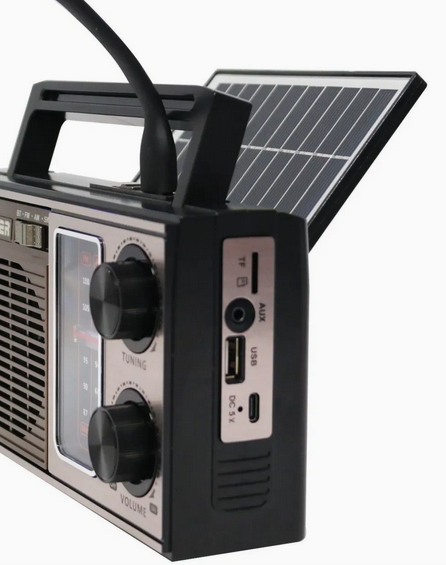 Φορητό ραδιόφωνο σε πανέμορφο Retro σχεδιασμό για τους λάτρεις του Vintage στυλ. Προσφέρει υψηλή ποιότητα ήχου χάρη στα στερεοφωνικά ηχεία του ενώ η πτυσσόμενη κεραία του, παρέχει σταθερό ραδιοφωνικό σήμα. Διαθέτει ηλιακό πάνελ για έξτρα αυτονομία μπαταρίας. Μπορείτε να πάρετε την αγαπημένη σας μουσική παντού, καθώς είναι πρακτικό και εύκολο στη μεταφορά.Χαρακτηριστικά:Ηλιακό πάνελ πτυσσόμενο, Φακός LED, Ενσωματωμένη επαναφορτιζόμενη μπαταρία Lithium 18650 1200mAh Radio bands: AM, FM, SWTuner: ΑναλογικόΘύρες: USB/TF Card/Jack 3.5mmBluetoothΙσχύς: 3WΤάση φόρτισης: DC 6.5V/1AΠτυσσόμενη κεραίαΔιαστάσεις: 200*75*110mm